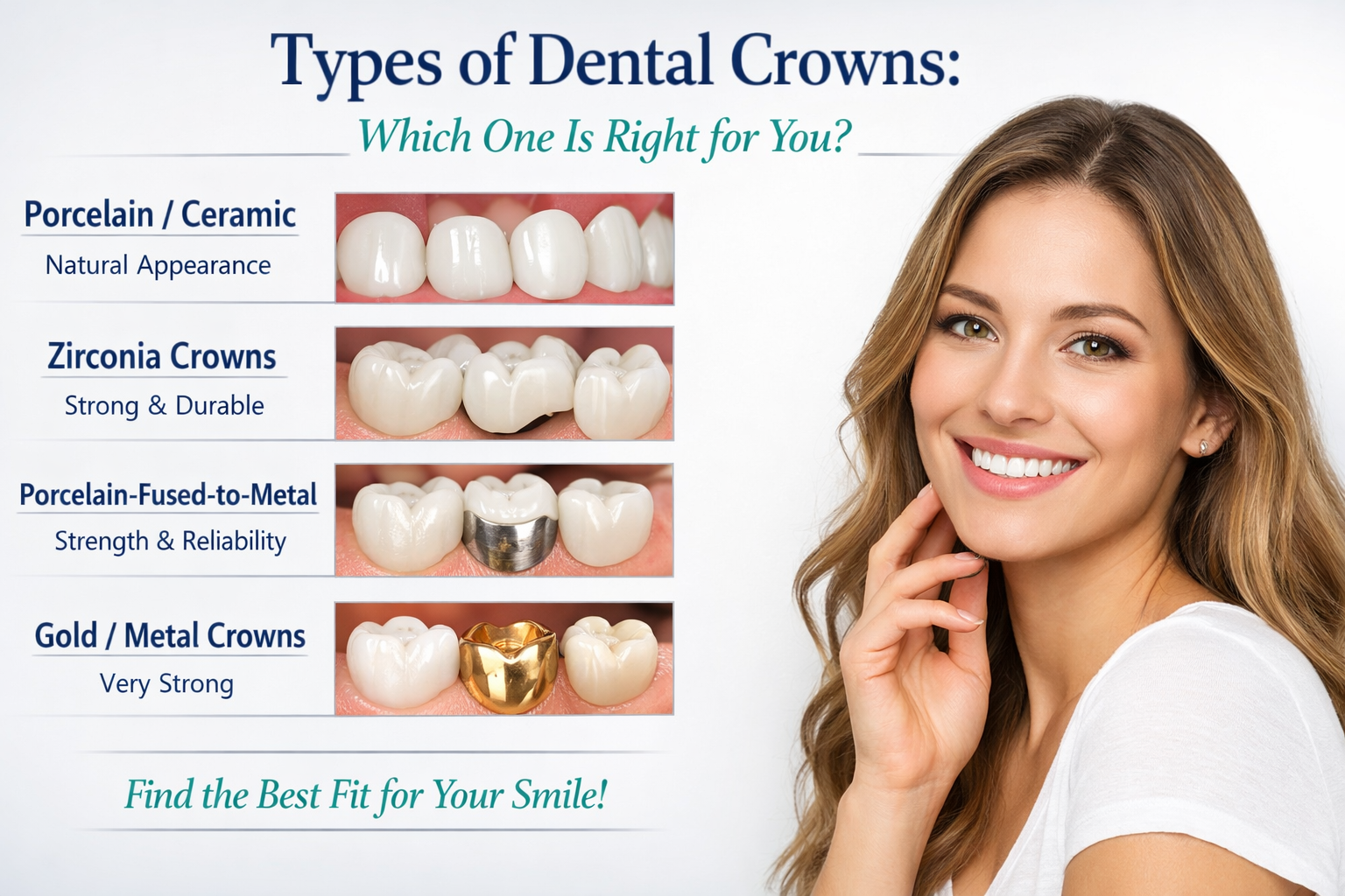 Zirconia crowns offer both strength and aesthetics. They are durable and suitable for areas that handle more pressure, like molars.